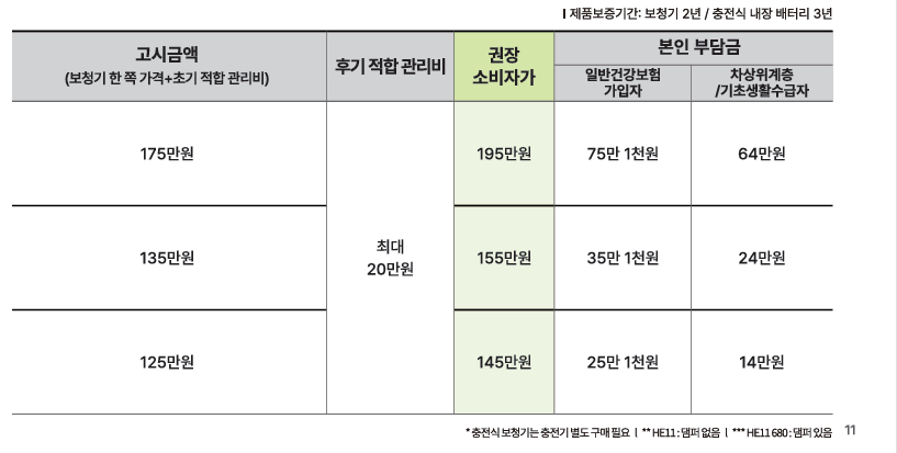 본 가격표는 소비자가격 기준이며,