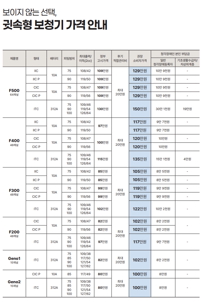 맞춤제작 귓속형 보청기, 오운 시리즈